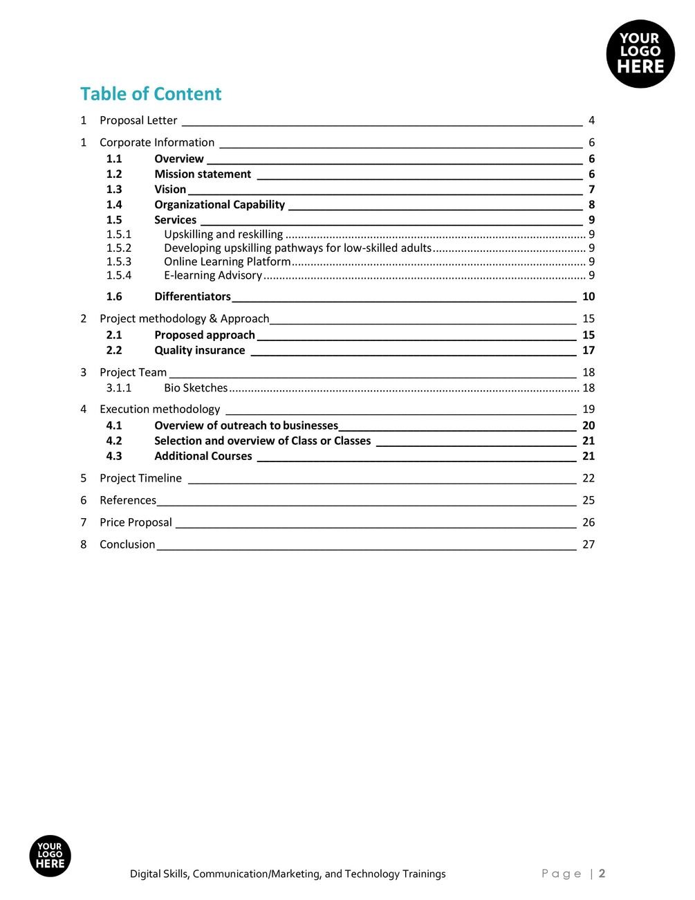 Upskilling Training Digital Skills Services Proposal Template