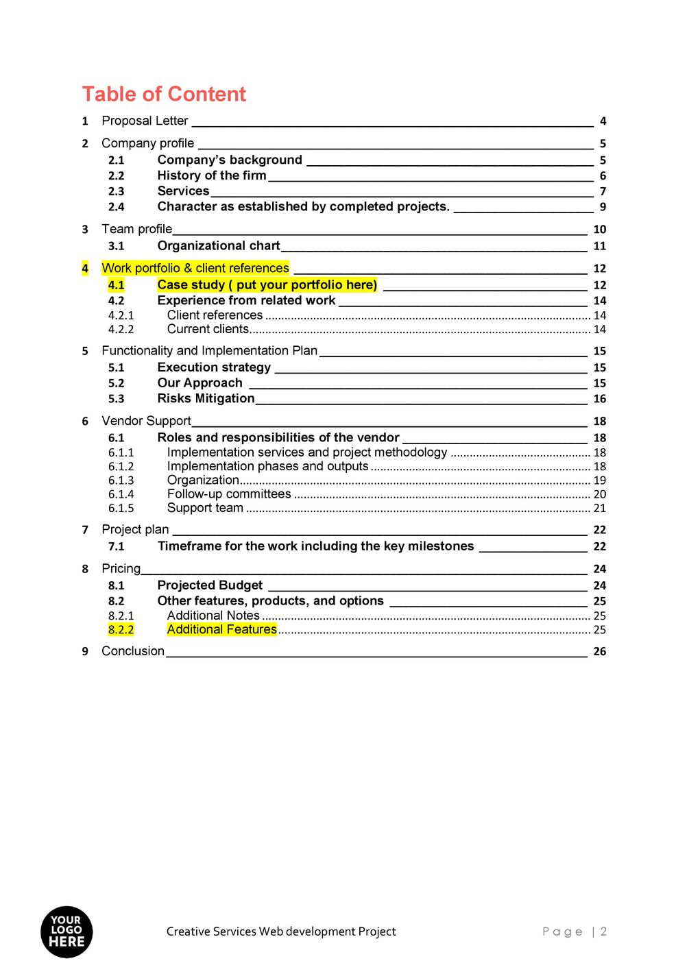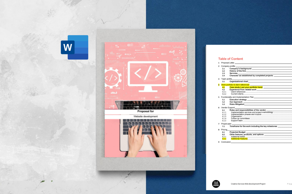 With our proposal template, you can quickly compose and respond to an RFP or proposal a project so you can easily focus on important chapters like the scope of work (SOW), methodology, timeline, and pricing structure.