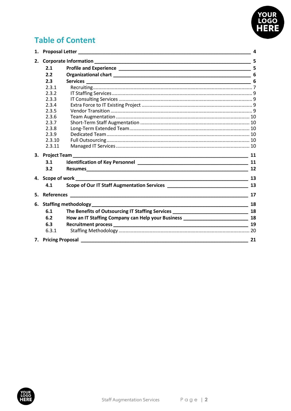 IT Staff Augmentation Services Proposal Template in Microsoft DocX format
